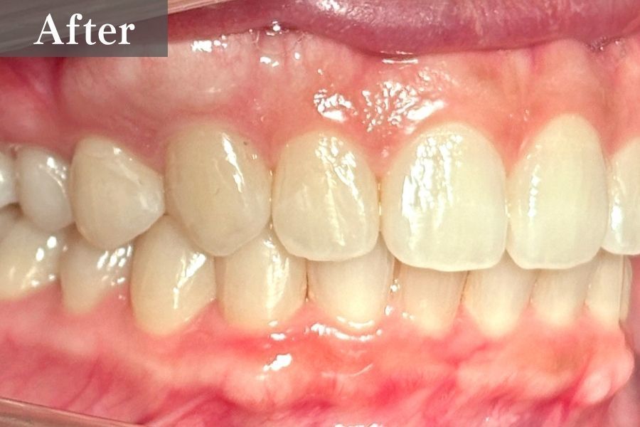 前歯だけでなく、奥歯まで動かす全体矯正によって、口元の突出感がやわらぎ、Eラインが整うケースがあります。