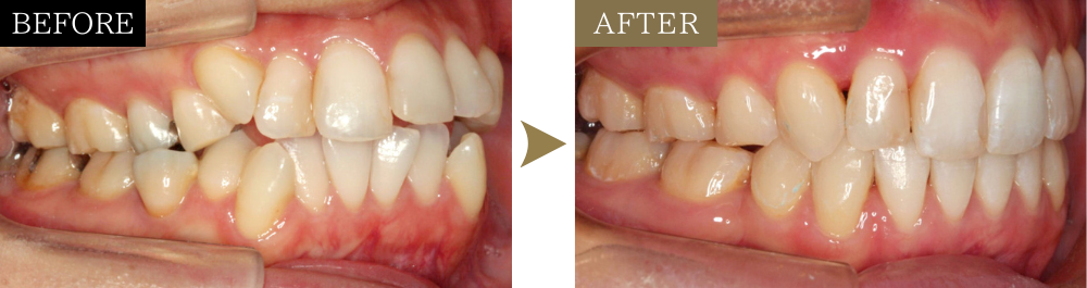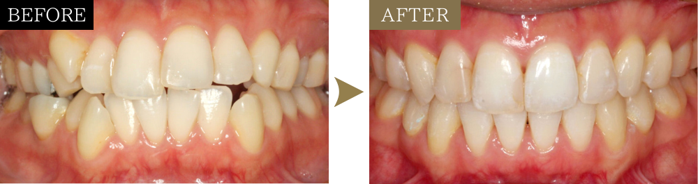 このような歯並びになった原因として、歯が並ぶスペースが足りないことが考えられます。そこで、抜歯を伴う矯正治療をご提案いたしました。