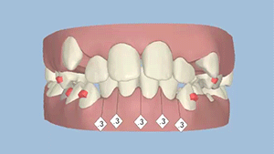 こうして順繰りに奥へと歯を移動させることで、4〜5mm以上のスペースを確保して、前歯をきれいに並べられるのがインビザラインの優れたポイント。
