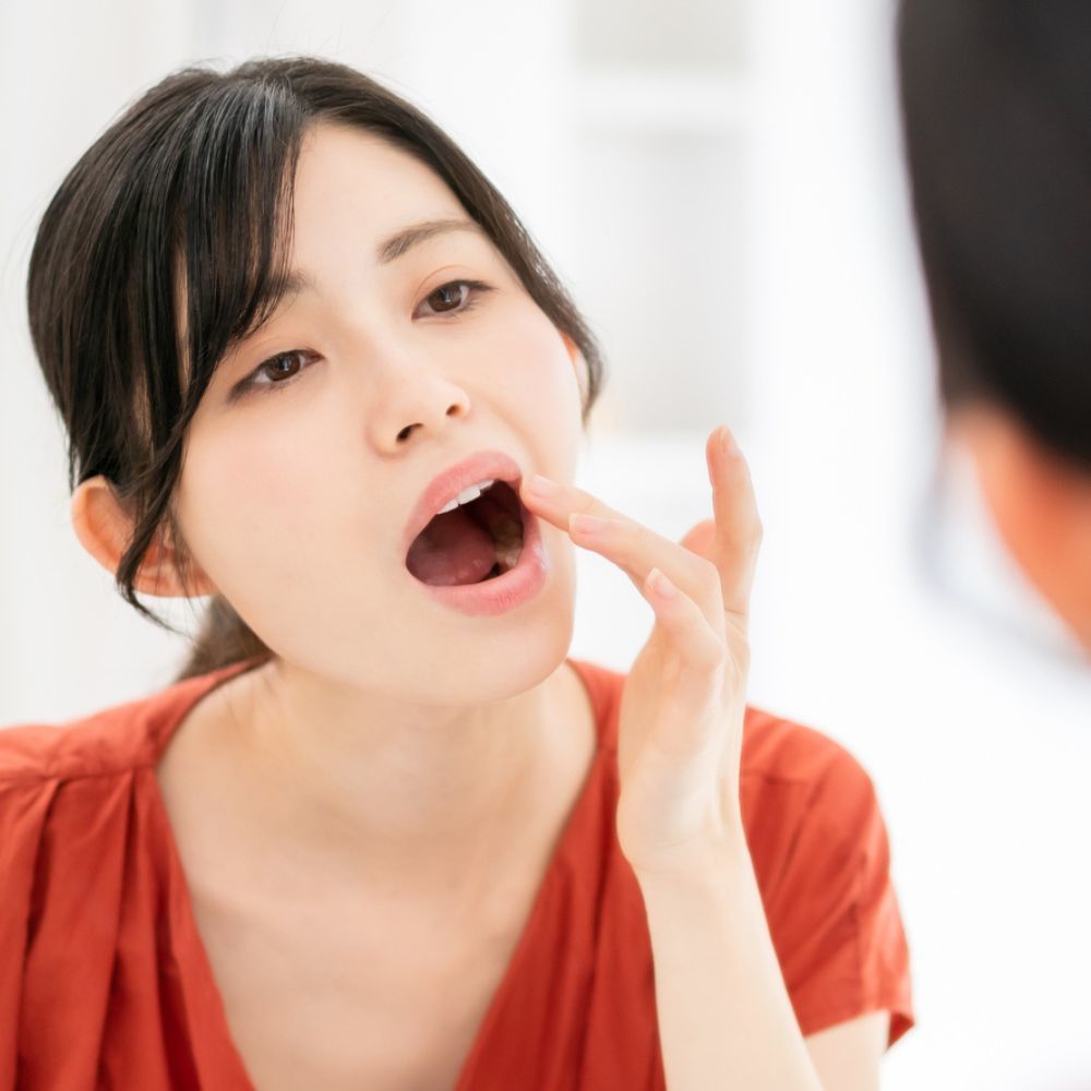 飛び出した八重歯が、食事や会話の際に唇や頬の内側の粘膜を傷つけやすく、口内炎の原因になります。